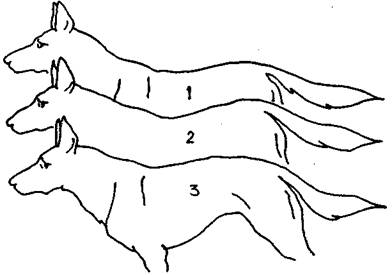 ЭКСТЕРЬЕР И КОНСТИТУЦИЯ СОБАК ПОНЯТИЕ ОБ ЭКСТЕРЬЕРЕ СОБАК Внешний вид собаки, наружные формы в целом и особенности отдельных частей ее тела, свойственные породе и полу, называются экстерьером. Экстерьер играет большую роль в отборе племенных и пользовательных собак, так как является непосредственным показателем типа конституции, здоровья, крепости животного и приспособленности его к определенным условиям содержания и использования. Например, если борзая собака, предназначенная для быстрого бега, обладает узким сложением, утонченным костяком, длинными ногами, легкой и узкой головой, то кавказская овчарка, выведенная для охраны и защиты стад и борьбы с хищниками, характерна широкотелостью, грубым костяком, массивной головой с сильными челюстями и приспособлена не к быстрому бегу, а к борьбе, характерна не легкостью, а силой. Еще больше специализирована такса, которая обладает длинным, сильным и гибким телом и короткими, крепкими ногами. Это позволяет ей проникать во время охоты в норы. Различные породы, предназначенные для одинакового использования, не отличаются так резко по своему сложению и часто различны в основном лишь по породным признакам — форме головы, шерсти, окрасу и т. д. Отличен экстерьер у кобелей и сук, у животных на разных стадиях развития. Поэтому оценка и сравнение экстерьера всегда проводятся с учетом породы, пола и возрастных особенностей. На рисунке показаны части тела собаки и их наименования. Для описания экстерьера собаки используется специальная терминология, построенная на анатомо-физиологической основе. Эта терминология приводится в дальнейшем тексте. Рис. 1. Части тела (стати) собаки: 1 — лоб, 2 — переход от лба к морде, 3 — мочка носа, 4 — морда, 5 — скула, 6 — затылочный бугор, 7 — шея, 8 — холка, 9 — спина, 10 — поясница, 11 — круп, 12 — седалищный бугор, 13 — передняя часть груди, 14 — боковая часть груди, 15 — нижняя часть груди, 16 — пах, 17 — живот, 18 — плечо, 19 — локоть, 20 — предплечье, 21 — запястье, 22 — пясть, 23 — передняя лапа, 24 — бедро, 25 — колено, 26 — голень, 27 — скакательный сустав, 28 — пятка, 29 — плюсна, 30 — задняя лапа, 31 — прибылой палец, 32 — хвост. ЭКСТЕРЬЕР ГОЛОВЫ Размеры и массивность черепа связаны с типом конституции и развитостью всего скелета. Но форма черепа и пропорции его частей почти не зависят от содержания и кормления и поэтому служат характерными признаками принадлежности собаки к определенной породе. Голова состоит из черепной части и морды. По своей длине голова бывает короткой, длинной или пропорциональной росту и типу сложения, характерному для породы. Объем головы у разных пород неодинаков: есть головы тяжелые, грубые (с резко выраженными выступами черепа и массивной мускулатурой), есть легкие (с узким вытянутым, сглаженным черепом и необъемной мускулатурой). Если посмотреть на голову собаки спереди, то она может быть клинообразной (в виде тупого клина, с относительно плоскими, невыступающими скулами) или скуластой (с выступающими скулами). Лоб. У собак бывает плоский, выпуклый, широкий или узкий. При плоском лбе переход к морде обычно бывает постепенным или малозаметным. При выпуклом — резким, глубоким. Морда. Образуется верхней и нижней челюстью. Эта часть головы по своей природе наиболее изменчива. Различают длинную морду (если она длиннее лба) и короткую (если она короче его). В пр