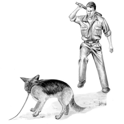 6. Конвоирование сбоку Правила выполнения такие же, как для I ступени. Максимальная оценка – 5 баллов. 7. Проверка смелости Используется команда «Лежать!». В исходном пункте, указанном судьей, находится проводник с собакой. Помощник выходит из укрытия, расположенного в 40 м от них, привлекает внимание собаки определенными краткосрочными действиями и бежит. Проводник сразу же спускает на него собаку. Помощник разворачивается, пробежав примерно 5 м, и бежит навстречу собаке, держа защитный рукав перед грудью. Когда расстояние между собакой и помощником сократится до 10 м, он имитирует нападение, взмахивая хлыстом, но ударов собаке не наносит. Она должна остановить его нападение прочной хваткой. В тот момент, когда собака схватит помощника, он должен ударить ее хлыстом. По сигналу судьи помощник прекращает сопротивление и встает спокойно, а собака должна его отпустить без команды проводника. Через 20 с судья дает сигнал, и проводник, приблизившись к помощнику на 3 м, останавливается и командует собаке «Лежать!». Максимальная оценка – 35 баллов.