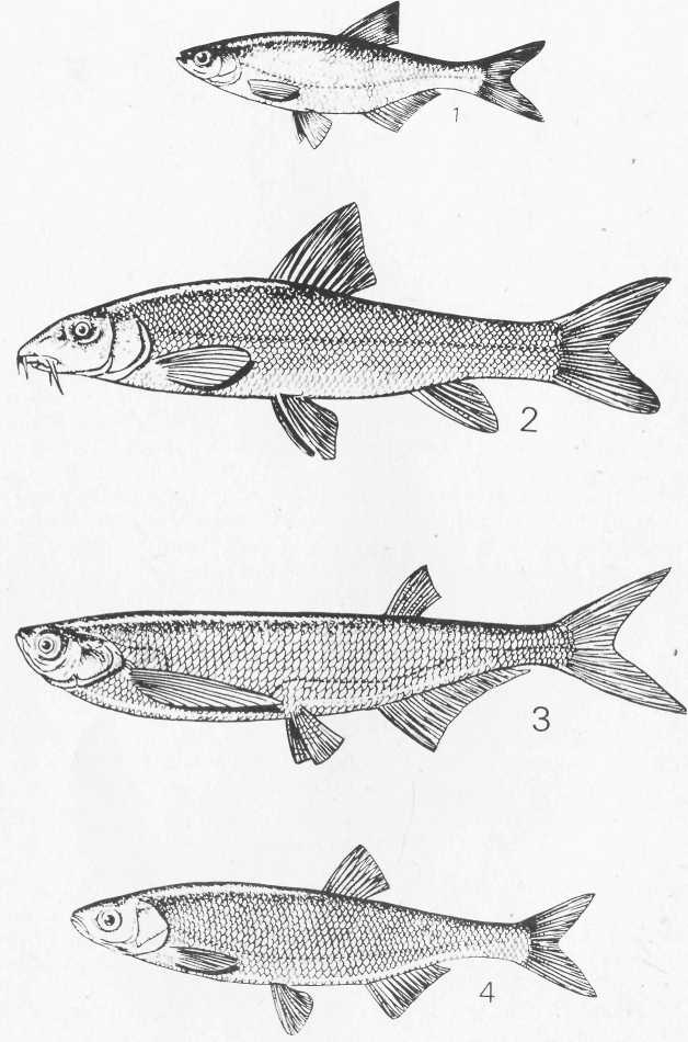 Рыбы вод Молдавии В настоящее время имеются несколько разноречивые сведения о наличии видов рыб в водах Молдавии. В одних источниках приводится цифра 107, в других — 100, в третьих значительно меньше. В энциклопедическом справочнике «Советская Молдавия», в статье «Рыбы» говорится, что в Молдавии встречаются 82 вида и подвида рыб, принадлежащих к девяти отрядам и 18 семействам. К числу наиболее древних представителей ихтиофауны республики относятся дунайский и черноморский лосось, умбра и большой чоп, ерш-носарь, игла-рыба, бычки и другие. Примерно 20 процентов видов рыб проникли в водоемы республики из китайско-равнинного, переднеазиатского и арктического комплексов. Это пескарь, горчак, быстрянка, щиповка, налим, трехиглая колюшка и другие. Есть рыбы проходные (судак, рыбец, чехонь, язь) и туводные, т. е. жилые (лещ, карась, линь, щука, пескарь и другие). В последние годы в водоемах Молдавии хорошо прижились белый и черный амур, белый и пестрый толстолобик, акклиматизируются бестер, буффало, канальный сомик и другие. По характеру питания рыбы подразделяются на мирных и хищных. Даже в одном и том же семействе могут быть рыбы самые различные. Для примера возьмем хотя бы карповых. Они различаются по форме (узкотелые — лещ, синец, густера, низкотелые — чехонь, пескарь); по питанию (уклея — планктофаг, подуст—детритофаг, лещ — бентофаг, толстолобик и белый амур — растительноядные, сазан — всеядная). В бассейне реки Днестр обитает около 70 видов рыб, Прута — 45, Кучурганском лимане — 40 и так далее. Из имеющихся видов хозяйственное значение имеют 20–25 видов рыб. По запасам и промышленной добыче первое место среди естественных водоемов занимают припрутские плавни (мантовские водоемы и озеро Белеу), второе место — низовье Днестра, включая Кучурганский лиман и реку Ту-рунчук, третье — Дубоссарское водохранилище. С точки зрения любительского рыболовства, рыба подразделяется на три основные группы. К первой группе относится рыба, лов которой по тем или иным причинам запрещен. Во вторую группу входит рыба, которую можно ловить; в третью — рыба, используемая в качестве живца, т. е. мелкая сорная. Ниже приводится краткая характеристика некоторых рыб. В данном разделе размер и масса рыбы водоемов Молдавии имеют максимальную величину, встречающуюся в справочной литературе. На практике же рыбы встречаются значительно меньших размеров. Семейство миноговыхМинога украинская. Длина — 20 см, масса — 10–15 г. Пескоройка — личиночная стадия миноги — питается водорослями и растительным обрастанием. Взрослые особи не питаются. Мясо съедобное. Поймать можно сачком в прибрежных водорослях на песчаных и илистых местах. Минога украинская Семейство осетровых Белуга. Заходит в реки на нерест. Достигает длины 9 м, массы — 1,5 т. Хищник. На лов белуги в Днестре наложен полный запрет. Бестер. Гибрид белуги (самка) и стерляди (самец), может достигать больших размеров и большой массы, хотя и растет медленно. В возрасте 10 лет длина — 120 см, масса — 14,5 кг. Питается донными животными, охотно поедает и искусственный корм. Предмет искусственного разведения в пресноводных водоемах. Ловить его можно донками на червя, мясо моллюсков. Пока не является объектом любительского рыболовства. Осетр. Заходит в реки. Есть и жилая форма. Длина — 120 см, масса — 55 кг и более. Хищник. Моодь питается бе