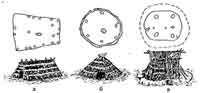 РИСУНКИ ![]() Рис. 1. Каменные орудия труда докерамических периодов: а — Ивадзуку, префектура Гумма, высота 8 см; б — Такей, префектура Гумма; в — Санва, префектура Хоккайдо, высота 15,5 см. ![]() Рис. 2. Поперечное сечение раковинной кучи Касори, префектура Тиба. ![]() Рис. 3. Полуземлянки (реконструкция): а — прямоугольного типа эпохи Дзёмон; б — круглого типа эпохи Дзёмон; в — эпохи Яёй. ![]() Рис. 4. Наконечники копий, эпоха Дзёмон: а — Огура, префектура Киото; б — I.C.U., префектура Токио; в — Тера, префектура Нагано. ![]() Рис. 5. Деревянные меч и лук из Корекавы, префектура Аомори: а — длина 60 см; 6 — длина 120 см. ![]() Рис. 6. Рубило из гальки. Кьёккенмёдинг Кодзандзи, префектура Вакаяма. ![]() Рис. 7. Каменные орудия эпохи Дзёмон: а, г, е — кьёккенмёдинг Хоринути, префектура Тиба; б — Тёдзагахара, префектура Ниигата; в — кьёккенмёдинг Убаяма, префектура Тиба; ж-и — Камегаока, префектура Аомори; места обнаружения прочих неизвестны. ![]() Рис. 8. Орудие труда среднего периода эпохи Дзёмон. Использовалось в качестве топора и мотыги. ![]() Рис. 9. Глиняные диск и грузик. I.C.U., префектура Токио. Диаметр диска 3 см. ![]() Рис. 10. Таблица типов керамики эпохи Дзёмон (в качестве ориентира приведены названия типов керамики равнины Канто): 1) Кавасаки, префектура Оита; 2) Хитоёси, префектура Кумамото; 3) Нисиноомоте, префектура Кагосима; 4) Огути, префектура Кагосима; 5) Ибусуки, префектура Кагосима; 6) Кусано, префектура Кагосима; 7) Сакурадзима, префектура Кагосима; 8) Нисибира, префектура Кумамото; 9) Горио, префектура Кумамото; 10) Юсу, префектура Фукуока; 11) кьёккенмёдинг Кодзандзи, префектура Вакаяма; 12) кьёккенмёдинг Исияма, префектура Сига; 13) кьёккенмёдинг Исияма, префектура Сига; 14) кьёккенмёдинг Ирими, префектура Айти; 15) Китасиракава, префектура Киото; 16) Китасиракава, префектура Киото; 17) Усимадомати, префектура Окаяма; 18) Китасиракава, префектура Киото; 19) Китасиракава, префектура Киото; 20) Фукуда, префектура Окаяма; 21) кьёккенмёдинг Нисё, префектура Айти; 22) Миятаке, префектура Нара; 23) Касивара, префектура Нара; 24) г. Касаока, префектура Окаяма; 25) Даймару, Иокогама, тип Канагава-Инаридаи; 26) кьёккенмёдинг Сирогадаи, префектура Тиба — тип Нижний Тадо; 27) Тобинодаи, префектура Тиба — тип Каяма; 28) кьёккенмёдинг Никки, префектура Тиба — тип Секияма; 29) кьёккенмёдинг Оримото, Цуда, префектура Канагава — тип Мороисо; 30) кьёккенмёдинг Оримото, префектура Канагава — тип Мороисо; 31) Нарахара, префектура Токио — тип Кацусака; 32) Тогаруиси, префектура Нагано — тип Кацусака; 33) Нарахара, префектура Токио — тип Убаяма (Касори Е); 34) кьёккенмёдинг Убаяма, префектура Тиба — тип Убаяма (Касори Е); 35) кьёккенмёдинг Хоринути, префектура Тиба — тип Хоринути; 36) кьёккенмёдинг Наганомояма, префектура Тиба — тип Хоринути; 37) и 38) кьёккенмёдинг Касори, префектура Тиба — тип Хоринути (Касори В); 39) Хирохата, префектура Ибараки — тип Хоринути (Касори В); 40) Тобе, префектура Тиба — тип Омори; 41) кьёккенмёдинг Окадайра, префектура Ибараки — тип Касори (Касори В); 42) кьёккенмёдинг Симпукудзи, префектура Сайтама — тип Ангё; 43) Адзузава, префектура Токио — тип Ангё; 44) озеро Итакура, префектура Гумма — тип Ангё; 45) Хосокубо, префектура Тояма; 46) Хидзияма, префектура Гифу; 47) Хосокубо, префектура Тояма; 48) Окаямарюяма, префектура Нагано; 49) кьёккенмёдинг Асахи, Хими, префектура Тояма; 50) Секихара, префектура Ниигата; 51) Огая, префектура На