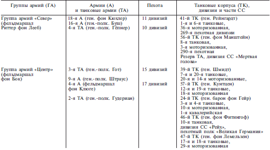 БОЕВОЕ РАСПИСАНИЕ ГЕРМАНСКИХ АРМИЙ на 22 июня 1941 г.