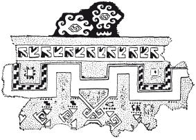 Уровень мастерства, необходимый для создания таких изделий из керамики, наиболее полно проявился при производстве изразцов, украшавших дворцы султанов (рис. 53). Многие изразцы имели форму звезды, поэтому для их более плотной подгонки они обязательно должны были быть изогнуты с одной стороны, а соответствующая ей сторона другого изразца немного срезана. Цветовая гамма была богатой, важное место в ней отводилось золотому. Декоративные орнаменты наносились на изразец перед обжигом, в их числе были арабески или вариации на темы арабесок, в основе которых лежали треугольники или другие геометрические фигуры со сглаженными углами. Небольшое пространство в центре узора заполняли изображением человеческой фигуры или цветком. Рисунок всегда очень четкий и одновременно изящный. ЖИВОПИСЬК сожалению, нам известно только одно живописное произведение периода Сельджукидов – на внутренней стороне подставки для Корана, подаренной в 1278 году Джалал ад-дину Руми Камал ад-дином Сахиби. Несмотря на то что в целом рисунок сохранился плохо, достаточно четко видны его основные мотивы – цветочные спирали, орлы и львы, и это позволяет сказать, что по стилю он похож на фрески капеллы Пала-тино в Палермо; кроме того, он дает нам представление о том, как выглядели росписи Кешка в Конье. Если уж о живописи сельджуков нам мало что известно, то мы почти ничего не можем сказать о разнообразии и качестве тех многочисленных предметов, которыми богатые Сельджукиды любили себя окружать, – дело в том, что практически все сколько-нибудь ценные предметы были утрачены. Как известно, примерно в 1200 году правитель Артукид владел замечательными водяными часами, которые сделал по его заказу великий механик Джазири, однако, несмотря на то что есть все основания полагать, что султаны-Сельджукиды владели не менее редкими и ценными вещами, чем часы, ни одна из них до наших дней не сохранилась. ИЗДЕЛИЯ ИЗ МЕТАЛЛАС тех времен, когда были сделаны орхонские надписи, и по настоящий день тюрки отличались умением работать с металлом, и все же до нас дошли лишь отдельные созданные кузнецами-сельджуками изделия, да и то далеко не самого высокого качества. В целом в Малой Азии достойно внимания только одно бронзовое с эмалью блюдо, изготовленное для правителя Артукида Сукмана в первой половине XII века. В настоящее время оно хранится в Инсбруке; и форма, и декоративная эмаль блюда указывают на сильное влияние одновременно Византии и Персии. Более характерное для Анатолии изделие – это весы; среди этих изделий следует отметить экземпляр из бронзы из Национальной библиотеки в Париже. Сельджукские весы того же типа из собрания Коюноглу выглядят более неуклюжими, а вот золотая пряжка, принадлежащая Берлинскому музею, приятно удивляет своим рисунком и мастерским исполнением. По стилю она ближе к скульптуре Кавказа, чем к изделиям из бронзы периода Артукидов или к персидскому ювелирному искусству, и все же явное сходство с некоторыми анатолийскими образцами резьбы по камню позволяет с полной уверенностью отнести ее к Малой Азии. ТКАНИТе немногие фрагменты шелковой парчи эпохи Сельджукидов, которые сохранились до наших дней, представляют собой прекрасные образцы текстильного искусства. В те времена такие ткани очень любили и они пользовались огромным спросом. Хотя в весьма двусм
