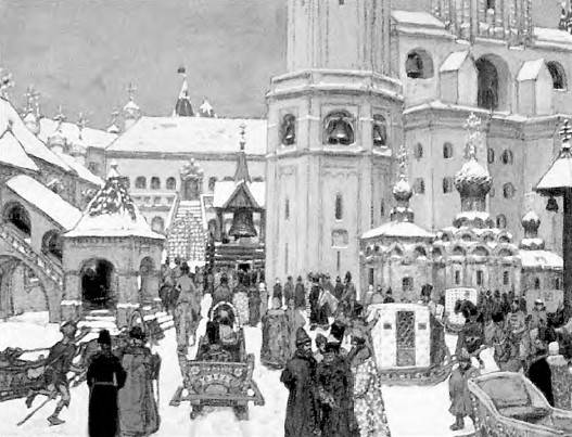 Самый излюбленный и модный пункт Москвы – «Кузнецкий мост» – древний народ московский звал «Неглинным Верхом». С него, прощаясь с Москвою и ее златоглавым Кремлем, в последний раз сматривал путник, отправляясь в дальние лесные пути, в Кострому, в Вологду. Позднее Неглинный Верх стал у москвичей называться «Кузнецкой горой»; здесь, по преданию, ютился длинный ряд кузниц и убогих изб кузнецов, с их задворками, огородами и т. д. Гора красою не обладала, вся краса этой горы заключалась только в монастырях: Рождественском, Девичьем и в убогом Варсонофьевском, памятном многими минувшими делами, и в том числе вторичным погребением «страдальцев» Годуновых. Там было опальное кладбище. Здесь некоторое время покоился прах Бориса Годунова. Тело Годунова, которое сперва было погребено с почестью в Архангельском соборе, где стоят теперь в южном приделе три гробницы: царя Иоанна Грозного, сыновей его – царя Федора и царевича Иоанна, умершего от руки отца в 1562 году. Борис Годунов был положен близ друга и благодетеля своего, Федора Иоанновича; его тело Лжедмитрием было вырыто в 1606 году из собора и выброшено сквозь нарочно сделанное отверстие, которого следы видны и теперь в Предтеченской церкви, пристроенной к юго-востоку собора. ![]() К. Е. Маковский. Убийство семьи Годуновых По сказанию современников самозванца, мощи св. царевича Дмитрия тотчас по перенесении их из Углича хотели положить на том самом месте, где была могила Годунова, для чего даже была выкопана яма и выложена камнем; но после происшедших чудес они оставлены снаружи и яма заложена. По словам тех же современников, тело Бориса Годунова, а также и тела жены и сына его Федора отвезены были без всяких почестей в один из убогих Варсонофьевских монастырей и без молитвы и последних напутствий зарыты в землю. Труп и самого преемника Годуновых, Лжедмитрия, впоследствии обнаженный, обруганный, отвезен был тоже в Убогий дом, где теперь Покровский монастырь в Москве. По преданию, обезображенный труп московского лжецаря везли в навозной телеге конные стрельцы и толпа народа провожали его с проклятиями и ругательствами. Телега с трупом не прошла в ворота Убогого дома; мертвеца стащили с телеги и бросили в яму, где хоронили воров, разбойников, казненных, замученных в застенках и умерших в опале. В то время, когда везли самозванца, стояла ужасная буря, несмотря на то, что это было в мае месяце 1606 года. Такая же буря была и в день встречи самозванца в Кремле. В течение семи дней, пока труп самозванца лежал в Убогом доме, стояли такие морозы, что поля покрылись снегом и сады все вымерзли. Народное суеверие приписало все это волшебству самозванца: ропот в народе был страшный, и власти присудили труп Лжедмитрия отвезти в подмосковное село Котлы, там сжечь его и пеплом выстрелить из пушки в ту сторону, откуда пришел самозванец. ![]() Т. Вениг. Последние минуты Григория Отрепьева. Самозванец и Баманов в утро 17 мая Возвращаемся опять к Кузнецкому мосту. Как бы в противоположность монастырям Девичьему, Варсонофьевскому и Рождественскому, стояла в Кузнечном приходе несуществующая теперь церковь Флора и Лавра83; близ нее грозно высился со своими башнями двор «Пушечный»; на этот двор езжали смотреть цари, как лились их пушки. Таков был Кузнецкий мост в древности, при благоверных царях. Своей красотой и постройками К
