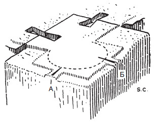 Глава 18 Отделка зданий, рельефы и росписи Самыми ранними храмами, которые были украшены рельефами и росписями, были храмы в Абусире, где можно увидеть рельефы исключительно высокого качества. Это касается как пропорций, так и красок. Храмы IV династии при пирамиде Снофру в Медуме и при пирамидах Гизы не имеют никаких украшений. Зато молельни в гробницах того же периода в Гизе и Медуме обильно украшены рельефами и надписями[46]. О храмах Среднего царства нам известно очень мало, но во времена Нового храм считался законченным только после того, как вся поверхность его стен была покрыта рельефами и росписями. Однако ряд храмов так и не достиг этой стадии. При изучении храмов Нового царства выясняется, что архитекторы и художники работали сами по себе, поскольку швы кладки часто проходят в самых неподходящих местах рисунка (фото 5). Однако не надо забывать, что после завершения строительства храма швы кладки были не видны, поскольку стены покрывали штукатуркой, поверх которой наносились росписи. Много лет все было хорошо, но есть множество храмов прошлых династий, в которых, когда штукатурка стала отваливаться, появилась возможность воочию убедиться, к чему приводит небрежность в кладке стен. Нежелание задумываться о будущем является одним из самых ярких недостатков древних египтян. Египтяне укладывали блоки с минимальным числом обработанных поверхностей, а это приводило к тому, что после завершения строительства внешние стены здания выглядели довольно грубо. ![]() Рис. 127. Схема, на которой видно, что в египетских сооружениях боковые швы между блоками не всегда приходились на внутренние углы стен, поскольку лицевая сторона кладки обрабатывалась уже после того, как строительство заканчивалось. Храм Сфинкса в Гизе К счастью, до нас дошли незавершенные сооружения почти всех эпох, сложенные как из гигантских, так и из совсем небольших блоков. Среди самых значительных назовем гранитную облицовку Третьей пирамиды в Гизе (фото 27), стену двора Аменхотепа III в Луксорском храме (фото 54), стены из кварцитовых блоков в Осирейоне Сети I в Абидосе, Первый пилон XXV династии в Карнаке (фото 22) и незаконченные ремонтные работы в небольших молельнях Сети II. Когда знаешь, что лицевую сторону кладки шлифовали на самом последнем этапе строительных работ, странное положение швов по отношению к архитектурным деталям становится легко объяснимым. ![]() Рис. 128. Дверной проем в храме Сети I в Абидосе. Части А, Б и В высечены из одного блока В долинном храме Второй пирамиды в Гизе, например, боковые швы между блоками редко совпадают с внутренними углами здания (рис. 127), а в храме Сети I в Абидосе (рис. 128) конец карниза дверной коробки, часть валика и угол боковой стены высечены из одного блока. Обработку лицевой стороны кладки производили следующими инструментами: кладку из камней твердых пород обрабатывали долеритовыми шарами и кувалдами (фото 64), а также инструментом с тупым концом, вероятно похожим на кирку, а кладку из мягкого камня – долотом, по которому били колотушкой (фото 62), а в более поздние времена – чем-то вроде тесла. Для прочных пород известняка использовали долеритовые шары и кирки, а также долото. И твердые, и мягкие породы камня время от времени сверлили и распиливали (рис. 107). До нас не дошло никаких изображений отделки лицевой поверхности стен, но кое-
