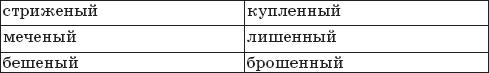 Гостиная – это комната для гостей. Гостиница – это дом для гостей. Гостиный Двор – это двор для гостя[11]. Дядина шляпа – шляпа дяди – тоже «жив». Гость – одушевленное, живое, как правило, существо. И дядя тоже. Так что ничего особенного: это слова того же ряда. Это суффикс «жив». То есть «ин». Самая простая позиция в ряду «чистых». Но там, выше, есть еще суффиксы «ан»–«ян» = 1. Обобщим: «ан» – «ян» – «ин» («жив») = 1. 4) традиционный; естественно; безветренный; родственный. Это суффиксы «онн»–«енн» = нн. Действия Суффиксы под запретом! 1) сушить – сушеный (1); стричь – стриженый (1); парить – пареный (1); плести – плетеный (1); красить – крашеный (1); клеить – клееный (1); грузить – груженый (1); носить – ношеный (1); учить – ученый (1); морозить – мороженый (1). Вопрос: посмотри на второй ряд слов и скажи – а почему в «действиях» ни в коем случае нельзя опираться на суффиксы? Ответ у тебя есть. И, более того, можно сказать, перед носом. Посмотри, чем закончилась последняя позиция по чистым: суффиксами «онн»–«енн», где 2 н («мгновенный», «естественный»). А «крашеный», «бешеный», «пареный», «стриженый» – здесь тоже «ен», но без удвоения! Суффикс «енн» в чистых («лиственный») сюда никакого отношения не имеет! И он остался в другой позиции – в чистых. А здесь у нас – действия. Многие учащиеся (и взрослые) вообще не видят разницы между «чистыми» и «действиями», вот из-за этого у них нет опоры и правильного ориентира. Чрезвычайно распространены ошибки типа «бешенный», «крашенный», «паренный». (В то время как в «чистых» – «естественный», «медленный» – ошибок практически не встречается.) Вернемся к «действиям»! Суффиксы – под запретом! Во время выполнения тренировочных задач выделять их категорически запрещено. Они здесь ничего не решают. Здесь решают приставки. сушеный (1) – высушенный (2); стриженый (1) – подстриженный (2); пареный (1) – запаренный (2); плетеный (1) – сплетенный (2); крашеный (1) – перекрашенный (2); клееный (1) – расклеенный (2); груженый (1) – погруженный (2); ношеный (1) – изношенный (2); ученый (1) – выученный (2) мороженый (1) – отмороженный (2). ![]() Итак, крашеный (1) – покрашенный – некрашеный (1) стриженый (1) – подстриженный – нестриженый (1) «Не» не работает. Это неработающая недействующая псевдоприставка (на самом деле это не приставка, а частица – работают только приставки). Позиция, где решает приставка, – основная. Чаще всего мы имеем дело именно с ней! Она лучше всего усваивается, легко различается при письме. Следующие нам попадаются гораздо реже. 2) вязаная шапочка; груженая тачка; раненая птичка. Скажем более подробно о предмете. Добавим чуть больше информации: вязаные шапочки бывают разные. Например, крючком можно связать; спицами; вручную; шапочку может связать кто-то: ты сам; подруга; бабушка. Скажем более подробно и проследим, что изменилось: ![]() Изменилось то, что из-за этих «подробностей» прибавилось «н»! Теперь их два! (Такие «подробности», детали, называются в грамматике «зависимые слова» – если ты о них слышал и это название для тебя привычно – можешь так их и называть. Здесь это не принципиально. Я же называю их просто «подробности» – мне кажется, так понятней.) Итак, ![]() Это «плохая» позиция. Почему – скажу в конце главы. Но и вовсе не трудная. Она отлично усваивается и различается – без усилий и тренировок. Она встречается намного реже предыдущей (где решала п