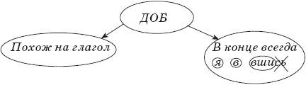Опасный момент: непопадание рамки в паузу. Это довольно редко бывает, но это надо учесть. – Сколько здесь пауз? ![]() 1. «Самолетик» – слово? – Да. 2. Самолетик какой? 3. Отвечать всей фразой: пригибаемый лучом. Ответ в рамки! Рамка попала в паузу только в одном месте: после слова «лучом». А после слова «задымился» осталась пустая пауза. ![]() Пауза – союз – рамка. Рамка важнее паузы: она для этого и ставится, чтобы на ней ставить запятые. А паузу эту мы сейчас легко проверим, заодно проверив остаток («голова-хвост»): уберем правый. ![]() Типы правых (сокращение количества позиций). ![]() «Дом» – слово? – Да. Дом какой? Который скоро пойдет на капремонт. Проверка: Дом расселили ![]() «Город» – слово? – Да. Город – какой? Где родился писатель. Проверка: город стоит на Волге. ![]() «Мы» – слово? Да. Мы какие? – нет ответа. «В рощу» – слово? – Да. В рощу какую? Влажную от дождя. ![]() «Хозяйское» – слово? – Нет. «Дочка» – слово? – Да. Дочка какая? Девочка лет 16. Проверка: хозяйская дочка принесла чай. ![]() «Короткая» – слово? – нет. «Борода» слово? – да. Борода какая? Немного темнее волос Проверка: короткая борода украшала его лицо: и т. д. В грамматике ШП все эти модели – разные: 1 – сложноподчиненные предложения с придаточным определительным; 2 – тоже придаточное определительное; 3 – обособленное согласованное определение; 4 – обособленное распространенное приложение; 5 – обособленное несогласованное определение и т. д. Неважно. Все это – правые обороты. Здесь решают: 1. Паузы! и 2. Вопрос типа «какой?». И главное: правый (от «слова») едет жестко вправо – то есть вперед! У него нет заднего хода! Задача I. Счет на слух всех правых. Задача П. 1. Считать паузы. 2. Писать, ставить паузы и рамки в момент письма. (Текст «Придорожная сторожка».) Глава 15 Деепричастный оборот (ДОБ) Для контроля пауз тебе очень понадобится ДОБ. В программе БП и в ПРП мы разделили все запятые на 2 группы: правый оборот и все остальные. Так вот: «все остальные» отличаются от правого, но между собою ведут себя одинаково: так, как ДОБ. Значит, он нам очень важен. И прежде всего тем, что там есть паузы! Не было бы пауз – не было бы и ДОБов.