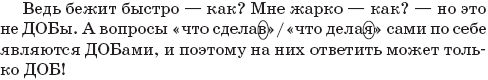 ДОБ в предложении легко обнаружить, во-первых, на слух, во-вторых, зрительно. ![]() Внимание на паузы! ![]() Быстро задай вопрос к ДОБу: Река утихла как? Или что сделав? – пошумев. Она шла по улице как? Или что делая? – негромко напевая. Договоримся о вопросах: мы выберем вопросы «что сделав»/«что делая», а вот «как?» мы не будем задавать. ![]() ДОБы, так же, как и правый, легко убрать из предложения и прочитать остаток. Река утихла. Она шла по улице. А теперь внимание – важный момент!