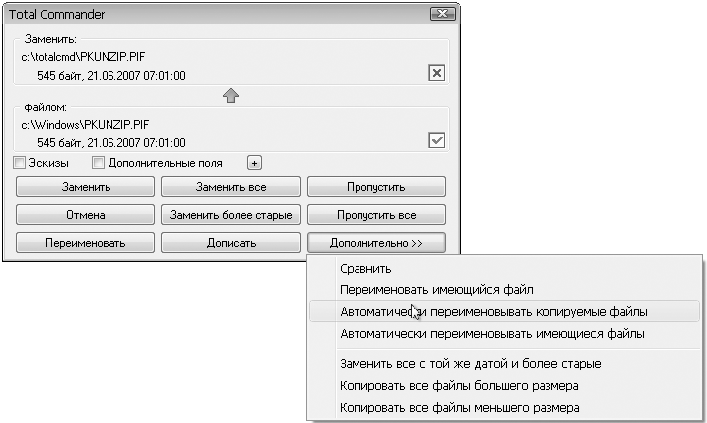 В Total Commander вы можете выполнять операции с файлами и папками, для которых нужны права администратора. При появлении ошибки, связанной с отсутствием доступа, будет отображено специальное диалоговое окно (рис. 4.12), и после нажатия кнопки С админ. правами Total Commander попробует повторить операцию с правами администратора. В Total Commander удобно работать с архивами любых типов. Выбрав архивный файл и нажав клавишу Enter, вы сможете отобразить его содержимое на одной из панелей. Вы можете помещать файлы в архив и извлекать его содержимое простым копированием с одной панели на другую. ![]() Рис. 4.12. Предупреждение при отсутствии прав для выполнения операции С помощью клавиши F3 вы сможете просматривать текстовые файлы, рисунки, веб-страницы, а также воспроизводить звук и видео. На сайте wincmd.ru вы найдете и загрузите дополнительные модули (плагины) для просмотра файлов многих других типов. Отмечу, что мы рассмотрели лишь малую часть из всех возможностей файлового менеджера Total Commander. Дополнительную информацию вы сможете найти в справочной системе программы или на сайте wincmd.ru. Практическая работа 26. Работа с файловым менеджером Задание 1. Установить и настроить программу Total Commander. Последовательность выполнения 1. Загрузите последнюю версию Total Commander с сайта wincmd.ru. 2. Запустите загруженный файл и установите программу, ответив на несколько простых вопросов, каждый раз нажимая кнопку Next (Далее). 3. Скачайте с сайта wincmd.ru пакет русификации и распакуйте его в папку, в которую установлена программа Total Commander (как правило, это папка c:\totalcmd или C:\Program Files\Total Commander). 4. При первом запуске программы будет открыто окно настройки программы, в котором выберите пункт Language, затем найдите в списке Russian (Русский) и нажмите кнопку OK. Задание 2. Изучить основные приемы работы в Total Commander. Последовательность выполнения 1. Запустите Total Commander с помощью поиска в меню Пуск или ярлыка на Рабочем столе. В незарегистрированной версии для запуска также придется нажать кнопку с цифрой 1, 2 или 3 в появившемся окне. 2. Ознакомьтесь с составляющими частями окна программы (см. рис. 4.11). 3. Откройте на одной панели файлового менеджера диск С: и перейдите в корневую папку. Для навигации используйте кнопки в верхней части панели. 4. Создайте на диске С: новую папку с именем Учебная с помощью клавиши F7. Откройте созданную папку. 5. Перейдите на вторую панель и откройте папку Документы, которая должна находиться по адресу С:\Users\Имя_пользователя\Documents. 6. Скопируйте несколько файлов из папки Документы в учебную папку. Для этого на одной из панелей должна быть открыта учебная папка, а на второй нужно выбрать файл для копирования, нажать клавишу F5 и подтвердить операцию нажатием кнопки OK. 7. Создайте в новой папке архивный файл, в который включите несколько файлов из папки Документы. Для этого: 1) откройте на одной из панелей папку Учебная; 2) перейдите на другую панель и выделите файлы для архивации с помощью правой кнопки мыши или клавиши Пробел; 3) нажмите сочетание клавиш Alt+F5, в появившемся окне измените при необходимости имя архива и нажмите кнопку OK. 8. Откройте созданный архив нажатием клавиши Enter, затем добавьте в него еще несколько файлов копированием с другой панели. 9. Найдите с помощью Total Commander все файлы на диске C:, измененные за последние 10 минут. Для этого: 1) нажмите сочетание клавиш Alt+F7, чтобы открыть окно поис