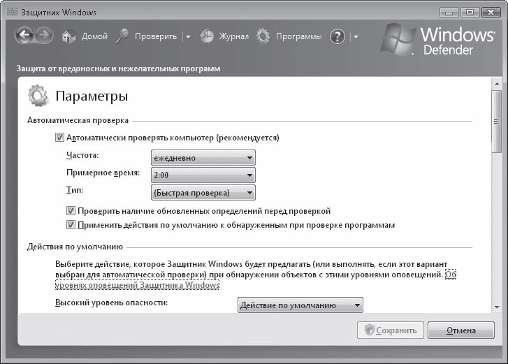 • Каждому – свой шесток • Те, кто тебя защищает Сколько легенд и настоящих ужасов рассказывают люди про страшные и коварные вирусы! Телевидение каждый случай атаки на какой-нибудь важный сервер преподносит как бомбежку мирного города. В любом уважающем себя голливудском боевике есть жутко умный хакер, который с помощью мобильного телефона и банки пива взламывает любую компьютерную защиту… Неужели все так ужасно? Неужели так опасны все эти вирусы, атаки и хакеры? И да, и нет. Полный Армагеддон (как в фильме «Крепкий орешек 4») компьютерные преступники устроить вряд ли смогут. Но украсть информацию, заблокировать сайт (как правило, ненадолго), просто ухудшить работу вашего компьютера – это запросто. Как бороться с такой напастью? Так же, как с обычными преступниками. Вы же закрываете квартиру, когда уходите? Если дома есть ценные вещи, еще, скорее всего, на сигнализацию ставите? Не кладете кошелек на видное место, когда едете в метро? Вот и с компьютерной безопасностью так же. Надо просто вести себя осмотрительно и пользоваться защитными средствами. В Windows Vista предусмотрены два типа программ, которые обеспечивают безопасность. • Средства локальной безопасности, то есть защита от других пользователей этого же компьютера. Например, если вашим домашним ПК пользуются дети, стоит ограничить их доступ к некоторым функциям. К средствам локальной безопасности относятся разграничение прав доступа пользователей к системе, контроль Windows за выполнением потенциально опасных действий, родительские ограничения для доступа к компьютеру детей, защита от нежелательного ПО. • Средства сетевой безопасности. Дело в том, что большинство опасностей исходит все-таки извне, из компьютерной сети (Интернета или локальной сети). Поэтому нужны программы, которые препятствуют проникновению через сеть на компьютер вредоносных программ, и брандмауэр (см. подразд. «Брандмауэр» разд. 7.2), пресекающий попытки таких программ установить несанкционированную передачу данных. Надо признать, что по уровню безопасности новая Windows Vista с огромным отрывом ушла вперед от своих предшественниц, и это радует. Раньше уязвимость Windows перед атаками злоумышленников была очень высокой. Ну что, пора поговорить о конкретных средствах компьютерной безопасности.