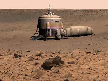 КОСМОС: Если завтра на Марс Автор: Александр Бумагин Первого апреля принято рассказывать всякие небылицы. Поэтому мы с чистой совестью поставили статью про пилотируемые полеты на Марс именно в первоапрельский номер. Эта мечта начиналась с небылиц, которые на полном серьезе выдумывали наши отцы, а многое из того, что без всяких шуток предлагают для покорения Марса сегодня, небылицами назовут наши дети. Представьте, что в шестидесятых годах прошлого века на Марс в районе северного полюса высаживаются сразу пять аппаратов. Трое людей, сидящие в одном из них, на поверхности формируют состав из пяти платформ, на которых есть две ракеты для возврата, буровая установка, робот-манипулятор, летательный аппарат для разведки воздухом и, наконец, ядерная энергоустановка. Этот поезд на крупногабаритных колесах за один год проходит путь до другого полюса, экипаж собирает ценный научный материал, а потом с триумфом возвращается на орбиту, где его ждут еще трое космонавтов… Первоапрельская шутка? Вовсе нет. Это в действительности существовавший в ОКБ-1 Королева план покорения Красной планеты. Несмотря на то что появился он еще до полета Гагарина, готовили его не ради потехи. Да, серьезным планам пилотируемой экспедиции на Марс не пять-десять лет от роду. Первые работы российских ученых (Циолковский, Рюмин, Перельман) о межпланетных сообщениях увидели свет еще в начале прошлого века. Немец фон Браун в 1952 году опубликовал проект полета на Марс, а вскоре после запуска первого спутника над тем же вопросом стали думать в ОКБ-1, потом в США… На заре космической эры, в 1959 году, под руководством Глеба Максимова был подготовлен проект «Тяжелый межпланетный корабль» (ТМК). Корабль, весящий 75 тонн, должен был взлететь с Земли с тремя космонавтами на борту, отправиться к Марсу, облететь его и пуститься в обратный путь. На Землю возвращался лишь маленький спускаемый аппарат, все прочее «дарилось» Солнцу. Через несколько лет наработки ТМК лягут в основу гораздо лучше продуманного проекта МАВР, который, тем не менее, будет признан неудачным. В том же 1959 году конкурирующая группа конструкторов, ведомая Константином Феоктистовым, начала работу над принципиально другим проектом ТМК. Кораблю не нужно было стартовать с Земли целиком. Он должен был собираться на орбите и только потом отправиться к Марсу. Проект предусматривал высадку трех человек на Марс (еще трое оставались на орбите). В первоначальном виде эти планы оказались неосуществимы, но позднее из них вырос проект «Аэлита», а главная идея модульности межпланетного корабля, собираемого в космосе, жива до сих пор и используется как основа для всех перспективных разработок. Общими для наших проектов всегда оставались электрореактивные двигатели (ЭРД) межпланетного корабля. Эти двигатели обладают малой тягой, но могут работать в течение длительного времени. Их большое число делает двигательную подсистему надежной, а ее элементы — взаимозаменяемыми. Поначалу источником энергии для таких двигателей видели небольшой ядерный реактор. Двигатели в космических полетах решают если не все, то очень многое. На отказы ракетной техники приходится большая часть всех неполадок в этой отрасли, и, несмотря на всеобщее преобладание ракет, работающих на принципе окисления топлива, поиски лучшего решения здесь никог