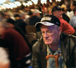 РЕПОРТАЖ: Большая игра Автор: Владимир Гуриев Летом Лас-Вегас вспоминает, что вокруг, куда ни глянь, пустыня. Жара стоит такая, что асфальт за ночь не успевает остыть, и весь город превращается в раскаленную сковородку, на которой, как рассерженные капли воды, плывут от жары огромные казино - спасительные оазисы, оборудованные современными системами кондиционирования и не столь современными системами отъема денег у населения. Любители экстремального туризма, конечно, могут передвигаться по городу пешком, но испытанный в Тайване способ коротких перебежек от магазина к магазину здесь не работает изза того, что Стрип постоянно перестраивается, и между отелями, в которых можно спрятаться от зноя, пролегают пешеходные дорожки, пущенные в обход строительных площадок. А мне-то нужно даже не на сам Стрип, а в "Рио", который построили в двух кварталах от главной улицы. Поэтому я беру такси. - Так в сам "Рио" или на чемпионат? - уточняет таксист. - Это в разных зданиях. - На чемпионат. - С ума посходили со своим покером, - говорит таксист, и включает счетчик. По местным меркам "Рио" лежит на отшибе, да и по качеству шоу тягаться с монстрами ему трудно: в MGM и Mirage выступает легендарная труппа Cirque du Soleil, а в "Рио", стряхнув с покатых плеч нафталин, приезжает группа Poison и вечно живые - хотя приличные люди столько не живут - старики из Kiss. Но главным развлекательным мероприятием, которое предлагают "Рио" и расположенный по соседству Palms, является ежегодная серия турниров World Series of Poker - очень популярное и растянутое во времени состязание игроков в покер. Этим летом все номера в Palms были раскуплены задолго до июльского Main Event, главного турнира серии. Одновременно элитарное - здесь можно встретить чуть ли не всех лучших игроков мира, и демократичное - каждый желающий может принять участие в турнире без всякого предварительного отбора. Если, конечно, осилит "бай-ин" - чтобы сесть за стол в первый раз, нужно купить фишек на десять тысяч долларов. С этой суммы начинается путешествие любого игрока. Войти в игру с большей суммой - нельзя. Вернуться после проигрыша с новой пачкой денег - нельзя. Но использовать приумноженный капитал в следующих играх - а WSOP, состоящий из десятков турниров, продолжается несколько месяцев, пока не определится девятка финалистов, - можно и нужно. Победители получают миллионы долларов, несколько непосредственно следующих за ними игроков - по несколько сотен тысяч каждый. Еще человек пятьсот уйдут "при своих" или с относительно небольшим выигрышем, до десятидвадцати тысяч долларов. Остальные будут утешать себя тем, что поучаствовали в наполнении призового фонда. Впрочем, часть игроков своими деньгами не рискует за них вступительный взнос выплачивают корпоративные спонсоры (эти же спонсоры могут оплатить проезд и проживание - и все ради того, чтобы потенциальный обладатель "браслета"[Выдается за победу в любом из турниров WSOP.] сел за стол в правильной кепке с правильной атрибутикой). Разумеется, рассчитывать на подобную поддержку могут прежде всего сильные игроки в покер и победители онлайновых турниров. ![]() Кроме того, бесплатно к участию допускаются победители турниров-сателлитов. Ужесточившееся пару лет назад американское законодательство запрещает онлайновым покер-румам непосредственное участие в турнире. Они не могут выкупать места дл