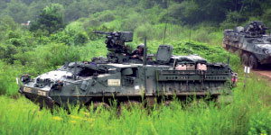 оружие XXI века: Беречь бойца Автор: Ваннах Михаил Одна из главных причин потерь личного состава в современных войнах - нападения повстанцев на транспортные колонны. Так было в Афганистане, так было в Чечне, так сейчас происходит с американскими войсками в Ираке. Нападая на транспорт, инсургент выбирает удобную для себя позицию на местности, тем самым уравновешивая превосходство регулярной армии в огневой мощи. Уменьшить потери пытаются, бронируя всю технику. И американские универсальные "хамви", и наши грузовики "Урал" - бронированные. Однако это защита пассивная. В составе колонны должна быть машина, способная противостоять атакам не только броней, но и огневой мощью. Как правило, эту роль берет на себя колесный бронетранспортер. Почему колесный? Потому, что у "колеса" и КПД, и ресурс куда больше, чем у гусеничной техники. А проходимость на грунте и рельефе достаточно высока с тех пор, как в 1934 году австрийская фирма Austro-Daimler создала восьмиколесный броневик ADGZ с четырьмя ведущими осями. Эту древнюю машину мы вспомнили не случайно. Ее гидравлическая шестискоростная (три передние, три задние) коробка передач позволяла двигаться задним ходом полной скоростью в 70 км/час. Полутора сотен лошадей шестицилиндрового двенадцатилитрового карбюраторного движка хватало и для того, чтобы втащить двенадцатитонную машину на 35-градусный склон. Запас хода - 450 км. Управляемые - первая и четвертая оси. Два водителя - спереди и сзади в своих кабинах. Попал в партизанскую засаду на горной балканской дороге - даешь полный задний и удираешь, не перебегая из кабины в кабину под огнем. ![]() И надо сказать, что современный, поступающий на вооружение в двухтысячные, американский колесный бронетранспортер M1126 Stryker ICV по сравнению с австрийской машиной семидесятилетней давности отнюдь не кажется чудом техники. Он, правда, весит побольше - шестнадцать с половиной тонн позволяют нести керамико-стале-алюминиевую броню, выдерживающую попадание пули 14,5-мм калибра[Впрочем, начало поставок серийных БТР частям в Ираке в 2003 году ознаменовалось грандиозным скандалом. Германский субподрядчик изменил технологию изготовления элементов брони, что резко снизило ее качество. Это было одной из причин отставки министра обороны США Дональда Рамсфильда.], а не только винтовочной, да и ездит побыстрее. Турбодизель (хоть и на колесной машине, но - Caterpillar) мощностью 350 л. с. способен разогнать БТР до ста километров в час, но по соображениям безопасности скорость принудительно ограничена 72 км/час. И запас хода - 500 км, всего на полсотни больше, чем у ADGZ Внутри - гидравлика; режимы работы ведущих осей (с четырех на две и наоборот) переключает пневматика. Водитель, стрелок, девять десантников... Все, в общем-то, вполне в парадигме индустриальной эпохи. "Клетчатые" (slat armor) экраны должны уберечь экипаж БТР от кумулятивных боеголовок реактивных гранатометов (даже современных РПГ-27 и РПГ-29), поскольку вызывают взрыв на расстоянии от брони. Эти экраны ведут свой род от апокрифических панцирных матрацев трофейных бюргерских кроватей, которые экипажи "тридцатьчетверок" будто бы приваривали на броню для защиты от панцерфауста. Привычной деталью являются и автоматические системы пожаротушения. А современным оружием M1126 Stryker делает цифровая электронная начинка, превращающая бронетранспортер в элеме