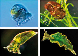 ![]() Каждый из нас, как и другие населяющие планету существа, есть нечто самостоятельное, отграниченное от остального мира. Мы развиваемся как единое целое под влиянием генетической программы, унаследованной от предков. Эта программа повторена в бесчисленном множестве клеток, каждая из которых - относительно независимая структурная единица наших тел. Разные организмы развиваются под влиянием отличающихся наследственных программ; постепенное накопление изменений таких программ в каждом из видов и объясняет разнообразие жизни… Верно? Да! Даже в школе этому учат. Но "есть многое на свете, друг Горацио, что и не снилось нашим мудрецам". В журнале Национальной академии наук США коллектив американских и южнокорейских ученых опубликовал статью, добавившую несколько новых деталей в одну из головоломок современной биологии. Освещая эту новость, мы не будем следовать логике самой статьи, а обрисуем картину в целом. Клетки грибов, животных и растений имеют симбиотическое происхождение. Они возникли из клеток разных бактерий и архебактерий, одна из которых стала оболочкой, хозяином для остальных. Митохондрии наших клеток (а также клеток других животных, растений и грибов) когда-то вели обособленную жизнь. Подобное происхождение имеют хлоропласты (органеллы фотосинтеза) растений: в свое время они были самостоятельными фотосинтезирующими организмами. Впрочем, оказавшись в других клетках, митохондрии и хлоропласты утратили самостоятельность: они синтезируют лишь небольшую часть набора белков, необходимого для их жизнедеятельности. Биохимические потребности внутренних симбионтов удовлетворяют гены ядра клетки. Возможно, часть из них - "переехавшие" гены внутренних сожителей. Итак, клетка растения - это комплекс когда-то независимых организмов, состоявших из нескольких разных групп. Клетка - относительно самостоятельная единица, но это не значит, что она не может отказаться от самостоятельности. Тело (таллом) сифоновых и некоторых других водорослей состоит из слившейся воедино или разделенной на отсеки неклеточной массы, в которой разбросаны ядра, хлоропласты, митохондрии и другие компоненты клеток. В частности, такое строение характерно для нитевидной морской водоросли вошерии (Vaucheria litorea), достигающей одного-двух сантиметров в длину. Вошериями питаются брюхоногие моллюски (то есть дальние родственники известных всем улиток) из отряда мешкоязычных. Выворачивая наружу скоблящий орган, спрятанный в мешкообразном углублении, зеленоухая элизия (Elysia chlorotica) протыкает оболочку вошерии и высасывает ее "внутренности". Большая часть содержимого таллома усваивается, а хлоропласты перемещаются в печеночные выросты, пронизывающие все тело элизии, где становятся ее собственными органами фотосинтеза. Наполнив складки своего тела хлоропластами, элизия отказывается от животного питания и переходит к "растительной" жизни, в которой ей не нужно ничего, кроме света, углекислого газа и морской воды. После того, как элизии прожили почти год, в их геномах активируется вирус, который вызывает гибель. Из отложенных яиц выходят новые моллюски… Но как хлоропласты умудряются так долго жить в тканях элизии? А вот как: необходимые гены вошерии вошли в геном элизий. Новорожденный моллюск, который отправляется на охоту за хлоропластами, уже имеет набо