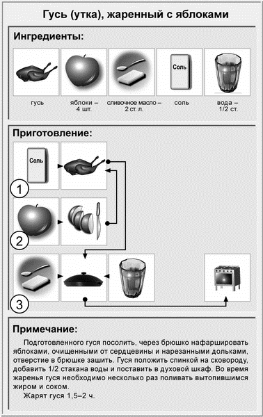 ОБЕД. ВТОРЫЕ БЛЮДА БЛЮДА ИЗ МЯСА до 0,5 у. е. Колбаса отварная с гарниромИнгредиенты на 3?4 порции: 400 г колбасы, 1 столовая ложка растопленного сливочного масла. Приготовление: очистить кусок вареной колбасы. Вскипятить подсоленную воду, опустить в нее колбасу и прогреть без кипения, потом вынуть из воды, нарезать ломтиками, полить растопленным маслом и подать с гарниром из отварного картофеля, картофельного пюре или зеленого горошка. ![]() Курица (цыпленок) отварная под паровым соусом Ингредиенты на 4?5 порций: 1 курица, 1?2 корнеплода петрушки, 1 головка лука репчатого, 2 стакана соуса, соль, зелень. Приготовление: обработанную тушку перед варкой заправить «в кармашек», для чего в разрезы кожи на брюшине вставить концы обрубленных ножек, а крылышки подвернуть за спину. Тушку положить в посуду с горячей водой так, чтобы вода ее только покрывала, довести до кипения и варить при слабом нагреве, периодически снимая с бульона образующуюся накипь. Когда курица сварится до полуготовности, в бульон положить петрушку или сельдерей и репчатый лук, нарезанные дольками, посолить. Посуду закрыть крышкой и продолжать варить при слабом кипении до готовности. Курицу вынуть из бульона, когда она остынет, разделить на порции. Рубят так. Сначала вдоль на две части. Если курица крупная, надо разрубать так, чтобы одна половина была без спинной кости, тогда от второй половины спинную кость отрубить. Затем каждую половину делят на филе и ножку, нарубают из них одинаковое количество кусочков. Для гарнира можно приготовить рассыпчатый рис, картофельное пюре, картофель отварной, картофель с овощами в молочном соусе. Можно подать зеленый горошек. На тарелку кладут кусочки курицы, поливают соусом паровым, украшают веточками петрушки. Если паровой соус не приготовлен, можно заменить его бульоном или сливочным маслом. Говядина, тушенная с луком и картофелемИнгредиенты на 4?5 порций: 0,5 кг мяса, 6?8 картофелин, 2?3 головки репчатого лука, 1 столовая ложка муки, 2 столовые ложки масла, 1 лавровый лист, 2 гвоздики, 5?6 горошин перца. Приготовление: мясо обмыть, нарезать кусками, посолить, поперчить, обвалять в муке и обжарить на сковороде со всех сторон до образования румяной корочки. Сложить мясо в кастрюлю. В сковороду, в которой жарилось мясо, налить 1 стакан воды, вскипятить, процедить в кастрюлю с мясом, добавить еще 2 стакана горячей воды, накрыть кастрюлю крышкой и поставить тушить мясо на слабом огне на 2?2,5 часа. Затем добавить к мясу поджаренный мелко нарезанный лук, обжаренный картофель (целиком или нарезанный на части), 1 лавровый лист, 2 гвоздики и 5?6 горошин перца. Мясо тушить еще 30 минут. К мясу можно подать огурцы, салат зеленый или из помидоров. Мясо посыпать мелко нарезанной зеленью петрушки или укропа. ГуляшИнгредиенты на 4?5 порций: 0,5 кг мяса, 8?10 картофелин, 2 головки репчатого лука, 1 столовая ложка муки, 4 столовые ложки томата-пюре, 4 столовые ложки масла. Приготовление: мясо обмыть, нарезать кубиками, посыпать солью, перцем и обжарить на сковороде с маслом, затем добавить мелко нарубленный лук, посыпать мукой и все слегка обжарить. Мясо, подготовленное таким образом, сложить в кастрюлю, залить 2?3 стаканами горячего бульона или воды, добавить томат-пюре, 1?2 лавровых листа, накрыть крышкой и тушить час-полтора. К гуляшу можно поджарить или отварить картофель, посыпать мелко н