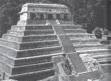 «Храм надписей» в Паленке, VII в. Ритуальная пирамида в Чичен-ице Вообще разница между изображением змеи и дракона просто ничтожна — например, глядя на древнекитайские изображения, порою сложно сказать, кто же предстоит перед нами. И хотя мы именуем чудовищ на фронтонах храмов в Теотихуакане «пернатыми змеями», они мало чем отличаются от драконов. Достаточно положить перед собой два изображения. Одно — из храма Кецалькоатля, другое, например, из погребения в китайском Маолине, относящееся к III–I до н. э. И мы видим перед собой практически одного и того же монстра: у него изо рта вырываются языки пламени, его хвост загнут назад, на голове у него то ли длинные рога, то ли уши, а на теле располагаются несколько гребней, подобных рыбьим. Перед нами — один и тот же мифообраз, единое представление о воплощении божества. Вот еще один пример. Облик доколумбовой Америки во многом был представлен многочисленными пирамидальными сооружениями. Именно таким образом возведены величественные ритуальные и погребальные сооружения в Паленке, Тикале, Чичен-ице и других городах тольтеков и майя. Пирамиды эти уступами, сложенными из массивных каменных блоков, поднимаются вверх, формируя собой целые ритуальные комплексы. Обычно принято сравнивать Центральноамериканские пирамиды с пирамидами Древнего Египта. Казалось бы, это абсолютно правомерно — кому, как не древним египтянам, были известны секреты сооружения этих сложных построек, причем строго ориентированных по сторонам света. Учитывая, что точный смысл использования пирамид Египта до сих пор не известен, то это прибавляет еще больше тайны к пирамидальным сооружениям по всему миру вообще. Не случайно знаменитый Эрик фон Деникен настаивает на том, что все пирамиды были своего рода укрытиями от различного рода вредоносных излучений во время визитов инопланетян, которые едва ли не сами посоветовали людям создавать такие убежища. Но, если внимательно присмотреться, различия между египетскими и американскими пирамидами весьма велики. Прежде всего, пирамиды майя, тольтеков и других народов все без исключения сооружались уступами или своеобразными «лесенками»: в основе пирамиды лежал большой блок плит, на него ставился поменьше и так далее. Всего пирамида могла насчитывать от 6–8 до 12–15 таких уступов. В Египте же пирамиды строились с покатыми сторонами, и известен лишь один сохранившийся случай — пирамида второго правителя третьей династии Джосера в Саккаре, — построенная уступами высотой в 60 метров и неравными сторонами в 108 и 120 м. Прототипом египетских пирамид и прежде всего пирамиды Джосера, правившего в 2650–2575 гг. до н. э., были усыпальницы-мастабы, и по сути, пирамида Джосера представляет собой шесть ступеней-мастаб, поставленных одна на другую. Считается, что пирамида Джосера была одной из ранних, если не самой ранней пирамидой древнего Египта.