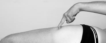 Приемы миотерапии при болях в области тазового пояса и ног Синдром подвздошно-поясничной мышцы Подвздошно-поясничная мышца сгибает бедро в тазобедренном суставе, вращая его кнаружи. При фиксированном бедре наклоняет (сгибает) туловище вперед. Является основной мышцей, сгибающей туловище вперед. Поясничная мышца прикрепляется к бедру. Рефлекторная контрактура подвздошно-поясничной мышцы вызывает боль внизу живота, часто ниже паха, что дифференцируется больным как боль в брюшной полости и малом тазу. Болезненные уплотнения мышцы, прощупываемой врачом-хирургом через живот, могут быть источником многих диагностических ошибок и даже нецелесообразных оперативных вмешательств.