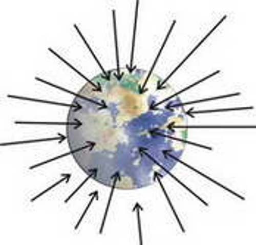 Астрономы и радиоастрономы приложили громадные усилия по поиску в космосе следов и сигналов внеземных цивилизаций. Но всё было тщетно: Вселенная молчала. И это естественно, если учесть, что сигналы инопланетян искали в виде радиосигналов, забывая о недостатках радиосвязи в космосе. Среди них малая скорость сигнала и его малая мощность, обусловленная слабой направленностью радиоантенн. Если даже до Марса радиоимпульс идёт несколько минут, а до ближайших звёзд — несколько лет, то какую бездну времени и пространства он пройдёт до далёких обитаемых миров и какой ничтожной мощностью будет обладать в конце пути. Поэтому человечество, привыкшее к общению радиоволнами и пробующее искать на них связи с инопланетянами, уподобляется дикарям с отдалённого острова (где сообщения передаются звуком барабанов), пытающимся выйти с нами на связь, изо всех сил стуча в тамтамы и стремясь через океан расслышать звуки наших барабанов. Даже соорудив сверхбарабан, они вряд ли с нами свяжутся: слишком мала скорость и мощность звука в масштабах Земли, равно как скорость света и мощность радиосигнала в масштабах галактики. Раз искусственные радиосигналы в космосе искать бессмысленно, то как же установить контакт, если мы не в силах вообразить те технологии связи, что использует инопланетный разум? Ведь мы, наверное, так же слепы, как те туземцы с острова, мимо которых снуют тысячи наших радиопосланий, никем не замечаемых, тогда как мимо нас летят невидимые инопланетные депеши. Впрочем, причина нашей слепоты не в примитивности или слабости земных приборов, а в косности, догматичности земного ума и науки. Ведь ещё век назад, в 1912 г., были обнаружены первые сигналы из космоса. Открыл их австрийский физик Виктор Франц Гесс, который, смело отправившись в полёт на воздушном шаре, обнаружил посредством простого электроскопа, что из космоса на Землю поступает мощный поток заряженных частиц огромной энергии — то, что поздней назвали космическими лучами (Рис. 195), или космическим корпускулярным излучением [53, 108, 163].