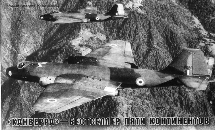 Доработанная Canberra В.2 из состава ВВС ФРГ. Середина 1980-х гг. Великобритания, Фейфорд, 15 июля 1985 г. Canberra PR.67 из состава ВВС Индии взлетает с британской авиабазы на Мальте в ходе перегонки самолета из Великобритании в Индию. Август 1971 г. Canberra PR.57 из 106-й эскадрильи ВВС Индии. Авиабаза Сринагар, середина 1980-х гг. Этот разведчик принимал участие в вооруженных конфликтах в Конго, Гоа, Индо-пакистанских войнах 1965 и 1971 гг. В ходе операции в Каргиле в 1999 г. самолет получил попадание ракеты ПЗРК «Стингер» в двигатель, но благополучно вернулся на авиабазу. 19 декабря 2005 г. эта «Канберра» разбилась возле авиабазы Агра (см. фото на стр. 30) Canberra В.62 из 1 -й эскадрильи 2-й бомбардировочной группы ВВС Аргентины. Авиабаза Парана, весна 1982 г. Игорь Михелевич/Калининград |