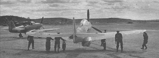 «Аэрокобры» из состава 2-го гв. иап на аэродроме Ваенга-2. Конец лета 1943 г. (Из фондов музея КСФ). Правда, час спустя, моя самооценка резко повысилась, поскольку я заметил, что мой общий кругозор значительно шире, чем у командира. Знающий летчик и читатель может заметить, что это не было истинной компенсацией, но для моего психологического равновесия это обстоятельство оказалось решающим. А произошло это так. Каким-то образом я оказался рядом с Карганико. Не обращая внимания на разницу в званиях и наградах, он начал со мной дружеский разговор, словно мы были старыми приятелями. При этом он положил кусок никелевой руды, который ему подарили на знаменитом заводе в Колосьеке, мне на левое колено и на неподражаемом берлинском диалекте спросил: "Шойфеле, можете ли вы понять, как в этом камне может быть 40% никеля? Он же для этого слишком легкий…" Вначале я был очень озадачен этим вопросом и какое-то время пытался проследить за ходом его мыслей, которые заставили его задать этот вопрос. Наконец, я ответил, правда, не очень искренне, но достаточно дипломатично: "Герр гауптман, это мне также непонятно". Такое признание, казалось, удовлетворило его, потому что в последующее время он был ко мне очень расположен. И так, я был принят…» 3 ноября 6-я эскадрилья под командованием обер-лейтенанта Вайссенбергера дважды участвовала в отражении двух налетов авиации Северного флота на суда, стоявшие в портах Варангер-фьорда. В тот день советская авиаразведка засекла в районе Сюльте-фьорда четыре транспорта, шедшие в сопровождении 21 корабля охранения в общем направлении на мыс Кибергнес. Вылетевшие для удара по конвою шесть Пе-2 в сопровождении 10 «Аэрокобр» цель не нашли и отбомбились по Киркинесу. Направленные следом шесть Йл-2 и дюжина Яков также не нашли судов и снова отработали по береговым объектам. Если вторая группа, несмотря на схватку с FW190 из состава 14(Jabo)/JG5, смогла вернуться без потерь, то первой пришлось туго: один пикировщик сбили зенитки, а три «кобры» стали добычей «мессеров» 6-й эскадрильи. Поединок происходил в сумрачном небе и это обстоятельство не позволило точно идентифицировать противника. В результате, на счет Тео Вайссенбергера были записаны два «Бостона», Ил-2 и «Харрикейн» 13* . Это были последние победы одержанные им в Заполярье. 118 «абшуссбалкенов», таков итог его боевой деятельности на Восточном фронте с сентября 1941 г. по ноябрь 1943 г. 11 ноября 1943 г. 6-я эскадрилья в составе II/JG5 была переброшена в район боевых действий южнее Ленинграда, где в январе-феврале 1944 г. по мере своих скромных возможностей пыталась предотвратить разгром немецкой группы армий «Север», войска которой в марте уже откатились в Латвию. Туда же перелетели и «полярные охотники». В начале марта 1944 г. вторая группа в полном составе вернулась на Север, на обжитый ее личным составом аэродром Алакуртти. К этому времени командиром 6-й эскадрильи стал лейтенант Шойфеле, а обер-лейтенант Вайссенбергер возглавил II/JG5. В это время советские войска начали оказывать все более сильное давление на немецкие позиции. Крупные группы штурмовиков Ил-2 наносили сокрушительные удары по наземным целям армейской группы «Лапландия», которая вела отчаянную борьбу за свое существование. В этих воздушных схватках отличился один из пилотов 6/JG5 – фельдфебель Морс, к этому времени уже ставший ветер