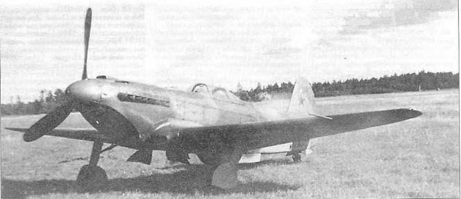Як-9У с мотором М-107А на заводских испытаниях. Декабрь 1943 г. Фото из архива Г.Петрова В то же время работа отечественных моторостроителей по увеличению срока службы и надежности двигателем М-107А затянулась до конца 1943 г. Тем не менее, еще до начала нового 1944 г. ГКО (Постановление N?4849) утвердил заключения и выводы Правительственной комиссии по результатам 100-часовых испытаний мотора М-107А и принял двигатель на вооружение ВВС Красной Армии. В результате перед заместителем Наркома авиапромышленности А.А.Завитаевым и директором завода В.П.Баландиным во весь рост встала задача не снижая общего объема выпускаемой продукции построить в январе 1944 г. 100 моторов М-107А с ресурсом 100 часов, а к 22 февраля подготовить предложения о переходе завода №26 на выпуск только моторов М-107А. Тем временем и самолетостроители не стояли на месте. Успешная судьба была уготована построенному в ОКБ-115 истребителю Як-IM. После небольших доработок по результатам испытаний в НИИ ВВС, триумф ждал его развитие – Як-1 М «Дублер» (в серии Як-3). Многие удачные усовершенствования предыдущих двух машин, Яковлев реализовал в опытном истребителе Як-9У («Улучшенный»), Перечисленные выше самолеты имели моторы М-105ПФ или М- 105ПФ-2. А что если построить новый опытный истребитель с мотором М-107А, с учетом накопленного опыта? Хотя Як-3 с мотором М-107А неплохо летал, Александр Сергеевич прекрасно понимал, что более крепкий планер «девятки» гораздо лучше подходит для мощного М-107А. Тем более, что прочность ряда узлов Як-3 М- 107А не соответствовала требованиям по разрушающим перегрузкам. Работа над новым самолетом закончилась к декабрю 1943 г. К этому времени вышел еще один важный документ – Постановление ГКО №4429 от 26 Октября, согласно которому к серийному производству Як-9 М-107А подключался московский авиазавод №82. Документ требовал в 1 квартале 1944 г. осуществить полный переход авиазавода с выпуска Як-7Б на Як-9 М-107А. Директору завода Н.В.Климовицкому надлежало сдать военным первые пять новых истребителей в январе, а в феврале строить их уже по одному в сутки, что теоретически позволяло перевооружать ежемесячно по одному истребительному авиаполку. Опытный Як-9У М-107А построили в два этапа. 23 июля 1943 г. был готов самолет, аналогичный тому, что испытывали в ЛИИ, но на основе планера Як-9Т с задним расположением кабины. Достаточно быстро Яковлев внес необходимые улучшения в конструкцию, по аналогии с самолетом Як-1М «Дублер». Отсек вооружения переделали, установив пушку ШВАК-20 и два синхронных пулемета УБС. 28 декабря 1943 г. машина поступила на заводские испытания. Вел их Н.К.Скржинский, который замещал главного конструктора А.С.Яковлева на заводе №166. Всего восемь полетов понадобилось выполнить заводскому летчику-испытателю А.И.Кокину, чтобы подготовить благоприятное заключение по самолету. В отчете об испытаниях он писал: «…В начале разбега и в момент отрыва совершенно не чувствуется какой бы то ни было вялости в поведении самолета. С первого мгновения дачи полного газа самолет управляем и чувствуется, что он очень «плотно сидит» в воздухе… Набор высоты на скорости 290 км/ч по прибору происходит с большим углом подъема, что несколько неудобно, т. к. не чувствуется земли… Необходимо отметить хорошую приемистость мотора и самолета…» В отчете по заводским испытаниям практически не отмечалось каких-л