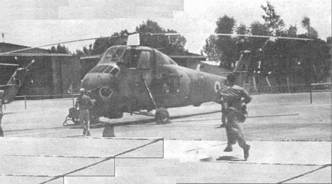 МиГ-21 нз состава 102-й истребительной авиабригады на аэродроме в Иншасе. Пустынная окраска наносившаяся на «МиГи» еще на Горьковском авиазаводе (небольшие темно-зеленые пятна на песочном фоне), как выяснилось, не в полной мере удовлетворяла египтян, и по прибытии на место все без исключения самолеты перекрашивались. При этом зеленые пятна трансформировались в широкие полосы того же цвета или же вовсе закрашивались коричневым. Однако проблемы были не только с подготовкой летного состава. Как стало вскоре очевидно. поступавшая в Египет техника далеко не в полной мере соответствовала сложившимся условиям. Начавшаяся при еще Н.С.Хрущеве «ракетизация» вооруженных сил, хотя и была введена в «нормальное русло» при Л.И.Брежневе, однако ее результаты еще довольно долго оказывали свое весьма негативное влияние на развитие советской истребительной авиации. Ее основными противниками в то время рассматривались в основном американские, английские и французские самолеты-носители ядерного оружия. В результате, основной фронтовой истребитель МиГ-21Ф-13 поставлявшийся в Египет, не мог самостоятельно вести поиск воздушных целей, поскольку установленный на нем радиолокационный дальномер СРД-5 «Квант», сопряженный с автоматическим стрелковым прицелом АСП-5НД позволял измерять дальность до цели и определять благоприятный момент для пуска УР Р-ЗС лишь в пределах визуальной видимости. Практикой же было установлено, что в условиях быстро меняющейся контрасности окружающего фона летчик может наблюдать маневрирующую цель на расстоянии не более 3600 м. В то же время разрешенная дальность пуска УР Р-ЗС колебалась в пределах от 1200 м до 7600 м. Таким образом, возможности оружия использовались далеко не полностью. Безусловно, в рамках существовавшей тогда модной концепции об отмирании маневренного боя это не являлось большим недостатком, так как изначально предполагалось, что эти машины будут действовать под жестким контролем «земли» в системе «Воздух-1». При этом, летчик совершал почти программный полет, подчиняясь командам автоматизированной системы наведения, которая исходя из возможностей оружия заводила перехватчик в заднюю полусферу цели, откуда было удобно применить ракеты с ИК ГСН. В расчете на встречу с маломаневренной целью было сокращено и пушечное вооружение, оставшееся чисто символическим и предназначенное фактически для добивания поврежденного противника (coup de grase). Но над Синаем все было совершенно иначе. Противник не только активно маневрировал, но и стремился сам атаковать первым. При этом его собственные РЛС разведки целей были следили за своими истребителями и напрямую сообщали их пилотам об изменении обстановки. В результате, израильский «Мираж»IIIС, имевший полноценную бортовую БРЛС «Сирано»! с дальностью обнаружения воздушных целей до 35 км. а также систему индикации информации на лобовом стекле (ИЛС), обеспечивашую пилотирование и применение оружия как по воздушным, так и по наземным целям, выглядел явно предпочтительнее МиГ-21. Дополнительные козыри этой машине обеспечивали две 30-мм автоматические пушки «Дефа»552 с боезапасом по 125 снарядов на ствол, а также пять точек подвески, на каждую из которых можно было подвесить по одной управляемой ракете, а на три из них – ПТБ. Несколько улучшило уровень оснащенности египетской 
