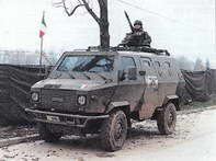 БТР Bonesci MAY 5 (Италия) ОСНОВНЫЕ ОТЛИЧИЯПередняя часть корпуса вертикальная, с радиатором и капотом, поднимающимся к сплошному лобовому стеклу, установленному с наклоном. Крыша горизонтальная, на ней может быть установлен 7,62-мм пулемет. Корма вертикальная, с открывающейся наружу одностворчатой дверью с окном и амбразурой в верхней части. В бортах есть по двери между колесами с окном в верхней части. В корме находятся еще два окна с амбразурой под ними. ТАКТИКО-ТЕХНИЧЕСКИЕ ХАРАКТЕРИСТИКИ Экипаж 2+4 Вооружение 7,62-мм пулемет Боекомплект 1000x7,62-мм Длина 4,66 м Ширина 2 м Высота 2,15 м Боевая масса 4450 кг Неснаряженная масса 3850 кг Удельная мощность 23,1 л.с./т Двигатель дизель IVECО с ТН, мощностью 103 л.с. Макс, скорость по шоссе 100 км/ч Запас хода 600 км/ч Запас топлива 75 л Преодолеваемые препятствия: – брод 0,7 м – подъем 60% – боковой уклон 30% Толщина брони 6 мм Тип брони стальная Система РХБЗ нет ПНВ нет РАЗРАБОТКА MAV разработан компаниями Carrolezzia Bonesci и IVECО совместно и является, собственно, шасси IVECО 40.10 4x4 с бронекорпусом, обеспечивающим защиту экипажа от пуль и осколков. Серийные машины были поставлены в небольшом количестве карабинерам и около 200 шт. в армию Италии, которая развернула их в Албании, Боснии, Косово и Сомали. Места водителя и командира находятся впереди, двигатель – перед ними несколько ниже, далее к корме – десантное отделение, имеющее отдельные сиденья по направлению движения (возможна иная компоновка). Для десанта есть открывающиеся вперед двери в бортах и открывающаяся вправо дверь в корме. На стандартной машине в крыше есть люк, над которым возможна установка различного вооружения, например 7,62-мм пулемета. Стандартное оборудование включает внутреннее освещение и стеллажи для оружия, возможна поставка дополнительного оборудования, как-то: кондиционера, вентиляции, противопожарной системы для моторного отделения. Машина также может быть оборудована более мощным двигателем и пнев- моэлектрической системой для присоединения прицепа. МОДИФИКАЦИИ КШМ, также выполняет некоторые другие задачи. MAV (MP) имеет дополнительное бронирование против мин. СОСТОЯНИЕ Производство по заказу. Состоит на вооружении Италии. КОМПАНИЯ-ПРОИЗВОДИТЕЛЬ Carrolezzia Bonesci Sri Милан, Италия. Все иллюстрации: БТР MAV 5 |