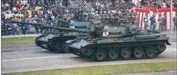 ОБТ тип 74 компании Mitsubishi (Япония) ОСНОВНЫЕ ОТЛИЧИЯВерхние бронеплиты корпуса установлены с большими углами наклона, в верхней левой части находится люк механика-водителя. Литая башня обтекаемой формы немного смещена к передней части корпуса, МТО находится в кормовой части. На каждом борту в кормовой части корпуса расположены выхлопные трубы. Корма корпуса – вертикальная. 105-мм пушка оснащена эжектором, ТИК отсутствует. Слева от пушки установлен инфракрасный прожектор. Подвеска состоит из 5 опорных катков по каждому борту. Перед катками расположены ленивцы, позади – ведущие колеса. Возможна регулировка величины клиренса от 0,2 до 0,65 м. ТАКТИКО-ТЕХНИЧЕСКИЕ ХАРАКТЕРИСТИКИ Экипаж 4 Вооружение 1х105-мм пушка, 1x7,62-мм СП, 1x12,7-мм ЗП, 2x3 ГПД Боекомплект 55х105-мм, 4500х7,62-мм, 660x12,7-мм Длина со стволом пушки 9,42 м Длина корпуса 6,7 м Ширина 3,18 м Высота (включая ЗП) 2,67 м Высота по крыше башни 2,48 м Боевая масса 38000 кг Масса пустого танка 36000 кг Удельная мощность 18,94 л.с./т Давление на грунт 0,86 кг/см #178; Двигатель 10-цилиндровый дизель с ВО Mitsubishi 10ZF тип 22 WT, мощностью 720 л.с. при 2200 об./мин Макс, скорость по шоссе 60 км/ч Макс, запас хода по шоссе 400 км Емкость топливных баков 950 л Преодолеваемые препятствия: – брод 1 м/2 м (с подготовкой) – стенка 1 м – ров 2,7 м – подъем 60% Тип брони стальная Система РХБЗ есть ПНВ есть РАЗРАБОТКА Разработка ОБТ тип 74 проходила в рамках программы, предусматривающей усиление новыми танками парка танков тип 61, а затем и полную их замену. В начале шестидесятых начались работы по созданию танка тип 74, первые образцы изготовили в 1969 г. Первый этап серийного производства танков тип 74 закончился в 1975 г. В настоящее время серийное производство танков завершено, всего построили 870 машин. Сейчас развернуто производство ОБТ тип 90, оснащенных 120-мм пушками. Главным подрядчиком является компания Mitsubishi Heavy Industries. Танк классической компоновки. Механик-водитель располагается впереди и слева, башня танка расположена в центральной части корпуса. В кормовой части находится силовая установка. Командир танка и наводчик находятся в башне справа, заряжающий – слева. Для кругового обзора на башне находится командирская башенка. 105-мм пушка английское лицензионное орудие L7, выпускаемое в Японии. Угол возвышения пушки составляет -6/+12°. (-12/+15° при использовании системы подвески), башня вращается на 360°. Механик-водитель может менять клиренс в зависимости от характера окружающей местности. С пушкой спарен пулемет калибра 7,62 мм, на крыше башни монтируется 12,7-мм ЗП М2 НВ. На некоторых танках могут устанавливаться бульдозерные отвалы. МОДИФИКАЦИИ БРЭМ на базе ОБТ тип 74. Зенитная САУ с двумя 35-мм пушками. СОСТОЯНИЕ Производство завершено. Танк состоит на вооружении СВ сил самообороны Японии. КОМПАНИЯ-ПРОИЗВОДИТЕЛЬ Компания Mitsubishi Heavy Industries, Токио, Япония. ОБТ тип 74 (Пол Бивер) (Кенсуке Эбата) |
