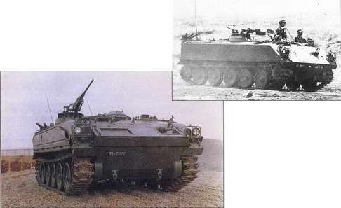 БМП-73 (Япония) ОСНОВНЫЕ ОТЛИЧИЯКорпус – низкопрофильный; лобовой броневой лист наклонен под углом 45°; крыша горизонтальная; борта вертикальные; кормовая часть вертикальная, оборудована двумя дверьми. 7,62-мм пулемет установлен в левой части лобового броневого листа; 12,7-мм пулемет – на командирской башенке справа на крыше; по 3 ГПД размещены с каждой стороны в задней части над двустворчатыми дверьми. Подвеска с каждой стороны состоит из пяти катков, ведущего колеса впереди, натяжного колеса сзади; поддерживающие катки и фальшборт отсутствуют. ТАКТИКО-ТЕХНИЧЕСКИЕ ХАРАКТЕРИСТИКИ Экипаж 3+9 Вооружение 12,7-мм и 7,62-мм пулеметы, 2x3 ГПД Длина 5,8 м Ширина 2,8 м Высота с пулеметом 2,2 м Высота по корпусу 1,7 м Клиренс 0,4 м Боевая масса 13000 кг Удельная мощность 22,6 л.с./т Двигатель V-образный 4-цилиндровый дизель ВО Mitsubishi 4ZF, мощностью 300 л.с. при 2200 об./мин Макс, скорость: по шоссе 70 км/ч ОРА^ 7 км/ч Запас хода 300 км Запас топлива 450 л Преодолеваемые препятствия: – брод плавает – ров 2 м – подъем 60% – боковой уклон 30% Тип брони алюминиевая Система РХБЗ есть ПНВ ИК, у механика- водителя РАЗРАБОТКА Разработка новой БМП-73 специально для армии Японии началась в 1967 г. Машина производства компании Mitsubishi принята на вооружение в 1974 г. Производство завершено, на 225 машине. Ее сменила БМП-89. Стрелок сидит за 7,62-мм курсовым пулеметом в передней части слева; место механика-водителя – справа; командир – справа сзади от стрелка. МТО – позади механика-водите- ля; 12,7-мм пулемет с углом возвышения от -10° до +60° на полноповоротной командирской башенке справа, может быть демонтирован и установлен внутри машины. Десантное отделение оборудовано люками в крыше и Т-образными амбразурами (по одной в каждом борту и две в корме). БМП-73 – плавающая машина. Оборудование для форсирования водных преград включает волноотражательный щиток, фальшборт над гусеницами, защитную систему впуска/выпуска воздуха на крыше. МОДИФИКАЦИИ Единственная состоящая на вооружении модификация – КШМ с более высокой крышей в кормовой части. Элементы шасси использовались в 130-мм СПУ модификации 75. Узлы БМП-73 также использованы в одной японской инженерной машине. СОСТОЯНИЕ Производство завершено. Состоит на вооружении армии Японии. КОМПАНИЯ-ПРОИЗВОДИТЕЛЬ Компания Mitsubishi Heavy Industries, Токио, Япония. БМП-73 |