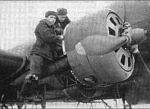 1. Моторы М-71 имели взлетную мощность 2000 л.с. и максимальную мощность на расчетной высоте 5000 м – 1670 л.с. 2. Дизельные моторы АЧ-30 имели взлетную мощность 1500 л.с. и максимальную мощность на расчетной высоте 6000 м – 1310 л.с. 3. Моторы М-88Б имели взлетную мощность 1100 л.с. и максимальную мощность на расчетной высоте 6000м – 1000 л.с. 4. Моторы Пратт -Уитни имели взлетную мощность 1200 л.с. 5. Моторы АШ-84 имели взлетную мощность 1900 с. и максимальную л мощность на расчетной высоте 5750 м -1750 л.с. 6. Мощность двигателя ТВ-2 составляла 5000 л.с. Обратим внимание на то обстоятельство, что завод № 84 не выпускал самолеты Ли-2 с моторами М-88Б. Тем не менее, такие машины встречались в частях АДД. Видимо, в процессе ремонта на некоторых ставили моторы М-88Б . которые использовались на Ил-4. Фото такого Ли-2 можно увидеть в журнале "СМ" № 1/2000 на стр.19, где ошибочно указано, что это самолет с мотором М-82. В плане опытного строительства самолетов ГВФ на 1939 г. предлагалось модификация ПС-84 под мотор М-88, но нарком авиационной промышленности М.А. Каганович не был согласен ввиду дефицитности М-88. Дальше эскизного проекта ПС-84 с этими моторами дело не пошло. Ли-2 таранит самолет Як-3 на аэродроме завода № 292 (Саратов) Ли-2T из 42-й Отдельной Гвардейской транспортной эскадри.гьи, командир Герой Советского Союза майор В. П. Некрасов Бортмеханик Виктор Арсеньев Самолет Ли-2 мог продолжать горизонтальный полет при отказе одного мотора только при ограниченных полетных весах. При больших нагрузках перегревался действующий мотор, и это являлось основным принципиальным недостатком. Когда работали оба мотора, они перегревались и на наборе высоты. Установка дополнительного радиатора частично снимала проблему перегрева на наборе высоты в летних условиях, но зимой существовала опасность заморозить этот радиатор. С переходом на «поликарповские» капоты с регулируемыми створками на входе в мотор ситуация изменилась. Увеличили размер основного радиатора, разместили радиаторы горизонтально снизу капота – появилась так называемая «губа» . Начиная с 284-й серии, были введены одноканальные флюгерные винты. Радикально проблему обеспечения продолжительного горизонтального полета при отказе одного мотора решили в 1948 г. Тогда (с 293-й серии) перешли к использованию флюгерных винтов АН-7НЕ-161 -одновременно с переходом на моторы АШ-62ИР с двухканальным подводом масла. При испытаниях в ГК НИИ ВВС самолета № 18430005 отмечалось, что «Ли- 2 с полетным весом 10500 кг на высоте 1400 метров, на неработающем моторе и винте в положении флюгера выполняет полет со скоростью 215-220 км в час по прибору без снижения». В 1948 г. на 176 машинах заменили большие коки винтов малогабаритными. К этому привели неудачная конструкция и технологическое несовершенство процесса сварки косынок. В целях улучшения аэродинамики крыла ввели (с 289-й серии) потайную клепку обшивки носка крыла – от разьема до концевого обтекателя. Для увеличения прочности горизонтального оперения усилили (с 290-й серии) продольный набор стабилизатора. Паровую систему отопления кабины пилотов и пассажирской кабины, а также электротермический обогрев стабилизатора заменили более эффективной калориферной системой от бензообогревателей типа БО-20 и БО-10. Ввели обогрев грузовой кабины. Бензообогреватель БО-10 стали использовать также для подогрева стекол у фонаря кабины летчиков.