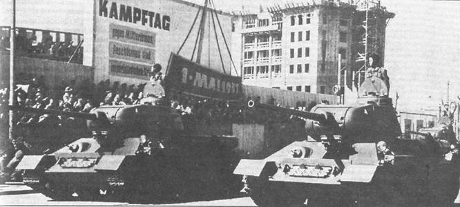 Танки союзников Как всегда, истина познается в сравнении. Нуждается в нем и наша тридцатьчетверка. Сравнение с современными ей танками противника и союзников позволяет четче подчеркнуть достоинства нашего танка, а, может быть, высветить и некоторые его недостатки. О немецких танках мы уже говорили. А на чем же воевали танкисты наших союзников по антигитлеровской коалиции: англичане, американцы, французы? В умах английских военных в середине 30-х годов господствовала идея двух типов танков – пехотного (тихоходного, но сильно бронированного) и крейсерского (быстроходного, но слабо бронированного). Последний предназначался для крупных механизированных соединений, действовавших в так называемой глубокой операции. Рассмотрим лишь крейсерские танки как более соответствующие по тактическому назначению Т-34. Летом 1939 г в английские войска начал поступать танк А15 “Крусейдер”. “Крусейдер III” последней модификации выпускался до 1943 г. Технически ненадежные “Крусейдеры” были к тому же еще и слабо вооружены. Но это были основные танки британских танковых войск первой половины войны. Учтя недостатки “Крусейдеров”, англичане с конца 1942 г начали выпускать крейсерские танки Mk.VIII “Кромвелл”. Броня его была по тем временам солидной, но проходимость низкой. В боях с немецкими “Пантерами” “Кромвеллы” успеха не имели: не спасала ни толстая броня, ни большая скорость. Не “дотянул” “Кромвелл” и до уровня основных боевых и технических характеристик Т-34-85. В самом конце войны в английскую армию поступили крейсерские танки “Комет”, которые являлись по существу развитием “Кромвелла”, с более мощным вооружением (77- мм пушка – действительный калибр 76,2-мм). Крейсерский танк, основа английских бронетанковых войск, так и не был доведен до уровня современных ему советских и немецких средних танков. Что касается американцев, то гордостью их военного танкостроения был средний танк М4 “Шерман”. Разработка этой машины началась еще в марте 1941 г. В феврале 1942 г был построен опытный экземпляр, а спустя еще два месяца началось серийное производство этого самого массового американского танка. Потребовалось всего 13 месяцев от момента принятия решения до начала выпуска. Танк строился до конца войны, поступал в больших количествах в английскую армию, по ленд-лизу в Советский Союз (4102 единиц), а также во все армии антигитлеровской коалиции. После войны “Шерманы” поставлялись всем союзникам Соединенных Штатов. Еще и сейчас в некоторых армиях они, хотя и значительно модернизированные, находятся на вооружении. Уже сам этот факт говорит о том, сколь надежной машиной был “Шерман” и что он имел большой резерв для модернизации. Танк выпускался разными заводами в нескольких модификациях, отличавшихся способом изготовления корпуса и башни, двигателями, ходовой частью, вооружением. Корпус танка был сварной. Носовая деталь сначала состояла из трех частей на болтах, затем одной литой и, наконец, из литой и катаной частей. На “Шерманах”, в основном, была сохранена ходовая часть предшествующего ему среднего танка М3. Лишь с марта 1944 года была внедрена новая горизонтальная спирально-пружинная подвеска (HVSS), которая применялась практически на всех моделях М4. На модификации М4А2 устанавливался дизель-мотор. Наиболее распространенная в американской армии модифика
