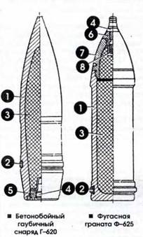 Примечание: * – Снаряд Ф-625Д отличается от Ф-625 только увеличенной длиной цилиндрической части. Таблица 72