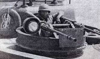 Носовая огневая точка «Пибера» Постепенно накапливая боевой опыт, катерники совершенствовали тактику. За весьма короткий промежуток времени удалось отработать совместные действия с вертолетами – «ганшипами», приданными TF-116. Уже к концу 1966 г. «Хыо» появлялся в нужном месте всего через 15 минут после вызова. Экипажам катеров стали придавать добровольцев из местных жителей, хорошо знающих местность и настроения в населенных пунктах. Политические взгляды населения деревень Дельты для крохотных экипажей «пиберов» имели жизненно важное значение. В случае незапланированной «экскурсии» в деревню пулеметы запросто могли оказаться бесполезными против сотни- другой хорошо заточенных бамбуковых колов. Основной задачей катеров TF- 116 стало патрулирование, но уже с первых месяцев нахождения «пиберов» во Вьетнаме их стали привлекать и для высадки десантов. Чаще всего катера обеспечивали высадку солдат армии Южного Вьетнама. Поразительный факт- десятиметровое суденышко с экипажем из четырех человек перевозило до 25 пехотинцев, теснота, правда, была почище, чем в трамвае. Патрулировали катера на малой скорости, стараясь не выдавать своего присутствия шумом двигателей. Полный ход «пибер» развивал только при явном контакте с противником. Применялась также тактика засад, когда катера стояли на якоре или плыли по течению с выключенными моторами. Особенно эффективными такие засады оказались в ночное время. Как правило, ночью крестьяне и рыбаки не плавали, а значит – любой двигающийся сампан почти наверняка был вьетконговским. Катерники открывали внезапный огонь на поражение без предупреждения. Засады «на живца» устраивал и противник катерников. Далеко не всегда успех в таких «засадных» поединках сопутствовал охотникам. Один из весьма показательных боев произошел вечером 31 октября 1966 г. Пара катеров под командованием матроса первого класса Джеймса Вильямса перехватила два сампана, которые сразу же стали улепетывать от американцев. Люди на сампанах открыли но катерам стрельбу из автоматов. Экипаж одной из лодок был мгновенно уничтожен концентрированным огнем шести крупнокалиберных пулеметов с PBR. Вдохновленные успехом янки погнались за второй лодкой и попали иод перекрестный обстрел с берега, а к сампану прибавилось еще восемь лодок и две моторных джонки, наполненные мирными жителями с АК 47 в руках. Командир американцев срочно запросил помощи по радио. Между тем к месту боя подходили все новые сампаны с партизанами. Вильяме принял решение, вообще-то нехарактерное для американцев, воевавших во Вьетнаме: он смело атаковал превосходящего по численности и суммарной огневой мощи противника. Опытный моряк полагался на маневренность своих катеров, мощь бортового оружия и выучку экипажей. Вильямс устроил форменное избиение вьетконговской флотилии. На протяжении трех часов катера пустили на дно семь джонок и пятьдесят сампанов. Подоспевшие к концу сражения вертолеты поставили окончательную точку, утопив еще с десяток лодок. Конечно, этот бой ни в коем случае нельзя считать рядовым, недаром за него Вильяме удостоился Медали почета Конгресса США. Стоит отмстить, что из 14 таких медалей, полученных за Вьетнам моряками и летчиками ВМС, две были вручены членам экипажей PBR В сентябре 1967 г. десять катеров приняли участие в операции «Грин Вэ