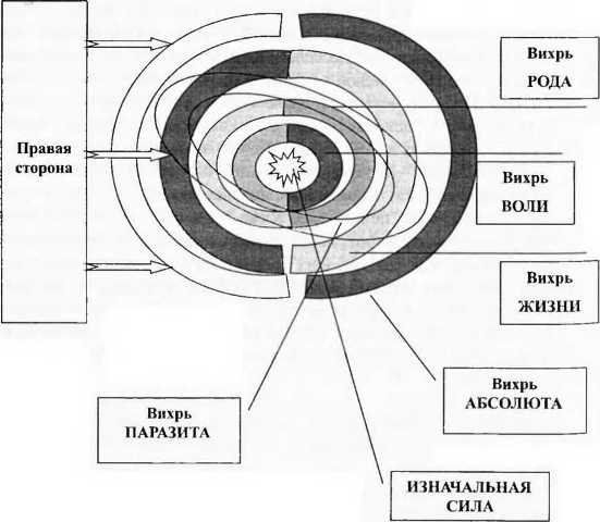 17. Четыре вихря Цель, о которой мы говорили в прошлой главе, кажется легко достижимой. Ключевые точки Узора ЖИЗНИ определить несложно: в них всегда решается вопрос — станем мы сильнее или слабее, откажемся от частички себя ради обретения каких-нибудь внешних благ или нет. Понимание правильного выбора всегда есть внутри нас, то есть любой факт «предательства себя» ощущается нами непосредственно и очень мучительно. И если к этому добавить знание того, что правильный ВЫБОР, в конечном счете, позволяет достигнуть нам большего, то проблема как бы перестает существовать — надо просто вести себя «искренне», «по совести», что приятно, и получать от этих действий больше, чем от «предательства», — а это и разумно, и «выгодно». То есть, нет видимых причин, которые помешали бы нам сделать это. Но это на уровне абстрактного знания. Как только мы переходим к конкретным действиям, то ясность сразу же пропадает. Есть множество вещей, которые мы делаем как бы по собственной воле, но наперекор самому себе. Встаем, когда нам хочется еще поспать, ЗАСТАВЛЯЕМ себя выполнить какую-то работу, которую сами решили выполнить, поддерживаем разговор с человеком, который нам вроде бы интересен — мы познакомились с ним сами, по своей воле, но в данную минуту нам хочется молчать. И так почти во всем — громадное большинство тех действий, которые кажутся проявлениями правильного ВЫБОРА, становятся для нас КОМПРОМИССОМ, «вынужденными» действиями. В каком-то смысле нам легче выполнять «команды», чем действовать самостоятельно. То есть мы ощущаем себя более «свободными», когда движемся по чьей-то указке, чем когда сами определяем маршрут движения. Взять хотя бы первую алтайскую встречу — очевидно, что «участники» чувствовали себя гораздо более «свободными», чем «организаторы», хотя и двигались по уже определенному ими «узору». И если бы этот «узор» не стал развиваться сам собой, то к концу встречи «организаторы» могли бы полностью вымотаться, линии «узора» ослабли бы, а неупорядоченность движения вызвала бы «неудовлетворенность» остальных. Это и есть главный секрет правильного ВЫБОРА. Пока нам кажется, что мы движемся по «линейному» маршруту, наша жизнь — сплошное преодоление трудностей. Правильное действие всегда «труднее», чем неправильное, оно связано с преодолением сопротивления, и если мы решим пойти по этому пути, то очень скоро устанем настолько, что просто не сможем продолжать движение. А во многих случаях не сможем его и начать — если составить список всех «правильных дел», которые мы когда-то решили сделать, то необъятность этого списка отпугнет нас от любого действия. Механизм прост: образ действия — это маленький «вихрь», существующий в теле СВЕТА и образованный нашей собственной СИЛОЙ. Когда мы осознаем его, то как бы признаем необходимость выполнения этого действия, наполняем его дополнительной Силой. А если удерживаем в сознании сразу несколько таких «вихрей», то вся Сила оказывается растащенной между ними, что почти полностью лишает нас способности сделать хотя бы что-нибудь. СЕКРЕТ в том, что правильный ВЫБОР всегда соединяет наш «вихрь» с реальным миром. Если наши действия свободны, то есть мы Делаем то, что нам действительно хочется сделать, любое наше прикосновение к миру наполнено энергией нашей ИНДИВИДУАЛЬНОСТИ, которая резонирует с 